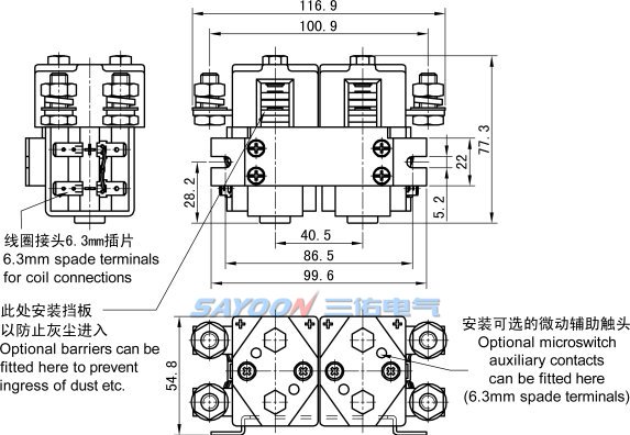 Tips: if you want to understand the technical details of parameters more SAYOON CZWB100A-2 DC Contactor, other SAYOON or the product of information, please visit SAYOON electric official website jwfd.com.cn/en, or send mail to [email protected] , ZHEJIANG SAYOON ELECTRIC CO., LTD. will welcome your arrival.