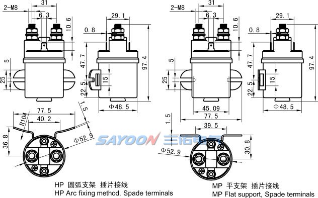 | 線(xiàn)圈接線(xiàn)端子類(lèi)型 | M5螺絲 或 6.3mm插片 |