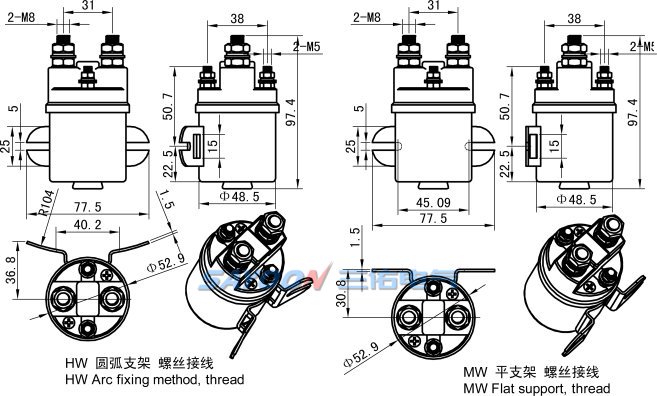 該產(chǎn)品具有一路常開(kāi)觸點(diǎn),適用于電泵、油泵、升降圍板、工程機(jī)械、吊機(jī)等電控系統(tǒng).