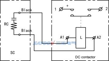 Used to eliminate the back electromotive force interference during the instantaneous power-on of the coil or contact of a DC contactor.