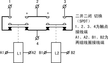 | 觸點(diǎn)形式 | 二組轉(zhuǎn)換(DPDT) |